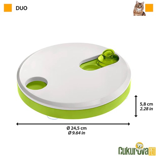 Ferplast Duo interaktif kedi ve köpek oyuncağı, 24.5x5.8 cm ölçüleriyle evcil hayvanların zihinsel becerilerini geliştirir, mama ödüllü sistemiyle eğlenceli oyun imkânı sunar.