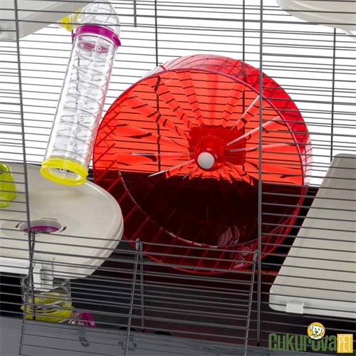 Tüneller, platformlar, yemlik, suluk ve egzersiz tekerleği dâhildir