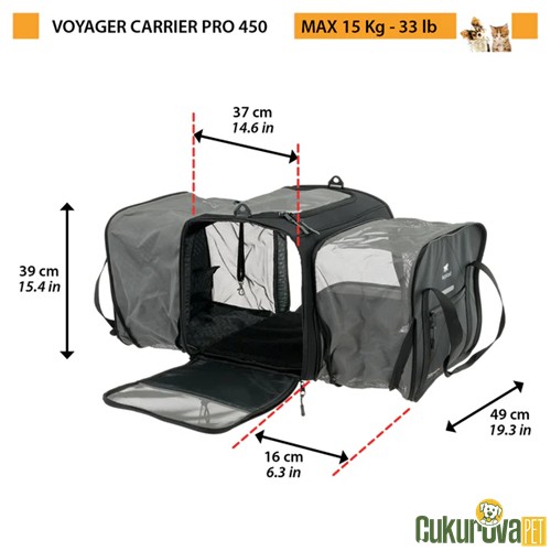 Ferplast Voyager Carrier Pro 450 siyah taşıma çantası, kediler ve küçük ırk köpekler için tasarlanmıştır. 50 x 39 x 39 cm ölçüleriyle konforlu ve güvenli bir taşıma deneyimi sunar. Sağlam gövdesi, havalandırma panelleri ve kilit sistemiyle öne çıkar.