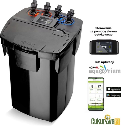 Aquael Hypermax Link Akvaryum Dış Filtre, 200 – 1500 litre arası büyük akvaryumlar için geliştirilmiş yeni nesil yüksek kapasiteli bir dış filtre sistemidir. Güçlü pompa teknolojisi, geniş filtre hacmi ve entegre ısıtıcı sistemi sayesinde mekanik, biyolojik ve kimyasal filtrasyonu tek cihazda sunar. Wi-Fi bağlantısı ve mobil uygulama kontrolü sayesinde filtrenin debisi, su sıcaklığı ve çalışma durumu uzaktan takip edilip ayarlanabilir. Büyük akvaryumlar için tasarlanan bu model, yüksek su sirkülasyonu ve gelişmiş filtrasyon kapasitesi ile profesyonel seviyede akvaryum filtrasyonu sağlar.