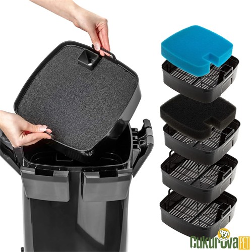Büyük topluluk akvaryumlarında güçlü filtrasyon sunar.