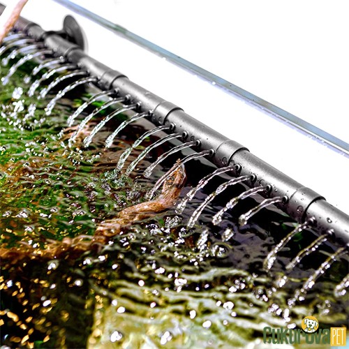 Çift giriş ve çift çıkış sistemi akvaryumda güçlü bir su dolaşımı oluşturarak ölü bölgelerin oluşmasını engeller.