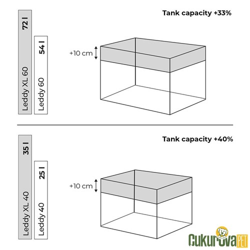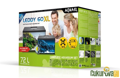 Aquael Leddy XL Day & Night 60 Akvaryum Seti 72 L Siyah, orta ve büyük hacimli tatlı su akvaryumları için tasarlanmış, modern ve fonksiyonel bir settir. 72 litrelik hacmi sayesinde farklı balık türleri ve bitkili düzenlemeler için geniş bir yaşam alanı sunar. Day & Night LED aydınlatma sistemi, doğal ışık döngüsü oluşturarak akvaryumda hem gündüz hem gece kullanımına uygun bir ışık ortamı sağlar. Siyah renkli sade tasarımı, dekoratif ve estetik bir görünüm sunar.