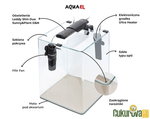 Set içerisinde bulunan ASAP iç filtre, suyun mekanik ve biyolojik olarak temizlenmesine yardımcı olurken akvaryum içerisinde dengeli bir sirkülasyon sağlar. LED aydınlatma sistemi, akvaryumun doğal görünümünü desteklerken düşük enerji tüketimi ile uzun süreli kullanım imkânı sunar. Opti cam yapısı, berrak ve net bir görüş sağlayarak akvaryum içi düzenlemelerin ön plana çıkmasına katkı sağlar.