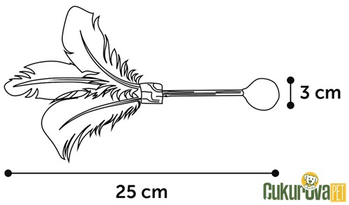 Toplam uzunluk 25 cm gövde uzunluğu 18 cm genişlik 4 cm yükseklik 3 cm ölçüleri ile kedilerin rahatça kavrayıp oynayabileceği ideal yapı sunar