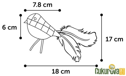 Uzunluk 18 cm genişlik 6 cm yükseklik 4 cm ölçüleri ile kedilerin rahatça yakalayıp oynayabileceği ideal boyut sunar