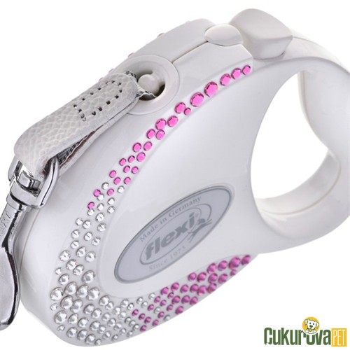 Flexi Glam Köpek Otomatik Şerit Gezdirme Kayışı Beyaz S 3 M