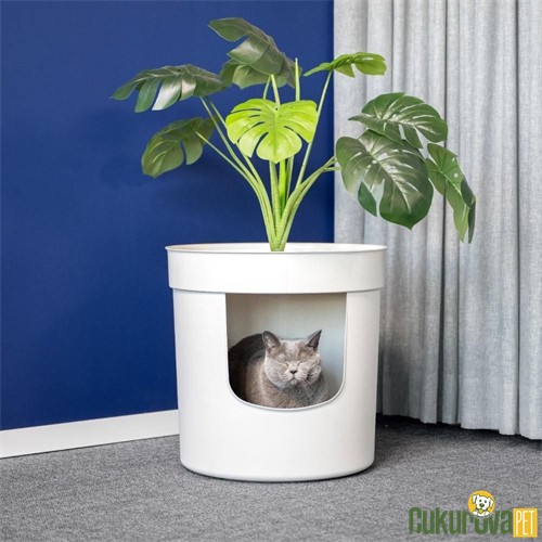Moderna Hidden Planter Saksı Şeklinde Kapalı Kedi Tuvaleti Beyaz, estetik görünümlü dekoratif bir saksı tasarımı içinde gizlenmiş kapalı kedi tuvaletidir. Görünüş olarak normal bir saksı gibi dururken iç kısmında fonksiyonel bir kum kabı bulunur, böylece kediniz için mahrem bir tuvalet alanı sağlar ve evinizin dekoruna uyum sağlar. Bu yenilikçi tasarım, evcil hayvan ihtiyacını yaşam alanına sorunsuz şekilde entegre eder.