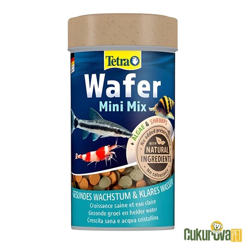 Tetra Wafer Mini Mix, küçük dipten beslenen tatlı su balıkları ve kabuklular için özel olarak formüle edilmiş dengeli wafer (tablet) yemdir. İçeriğindeki karides ve spirulina algleri, balıkların sağlıklı büyümesini, bağışıklık sistemini ve canlı renklerini destekler. Tablet formu hızla dibe çökerek suyu bulandırmadan balıklara ulaşır ve doğal beslenme davranışına uygundur.