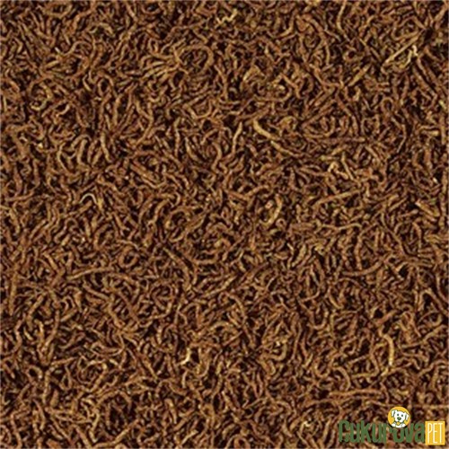Dondurularak kurutulmuş (freeze‑dried) kan kurdu (Chironomus spp.) larvalarından oluşan doğal protein kaynağı yemdir, sürüngenler, amfibiler ve balıklar tarafından severek tüketilir, dondurarak kurutma işlemi besinlerin tazelik, hassas vitaminler, doymamış yağ asitleri ve protein içeriğini yüksek düzeyde korur, katkı maddesi veya yapay koruyucu içermez, doğal yapısıyla sindirimi kolay ve doğal avlanma davranışını taklit eden bir yem sağlar, günlük küçük porsiyonlarda birkaç kez verilmesi önerilir