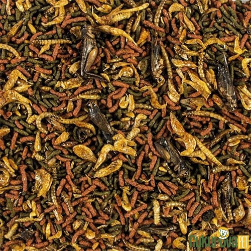 Yumuşakçalar ve kabuklular (kurutulmuş karides %20 dahil), balık ve balık türevleri, tahıllar ve bitkisel ürünler, bitkisel protein özleri, böcek larvaları unu (%8 kurutulmuş un kurdu, %2 kurutulmuş kriket), algler (Spirulina platensis %2,2 dahil), mayalar (Beta-1,3/1,6-Glukan 1 000 mg/kg dahil), sıvı ve katı yağlar, mineraller.