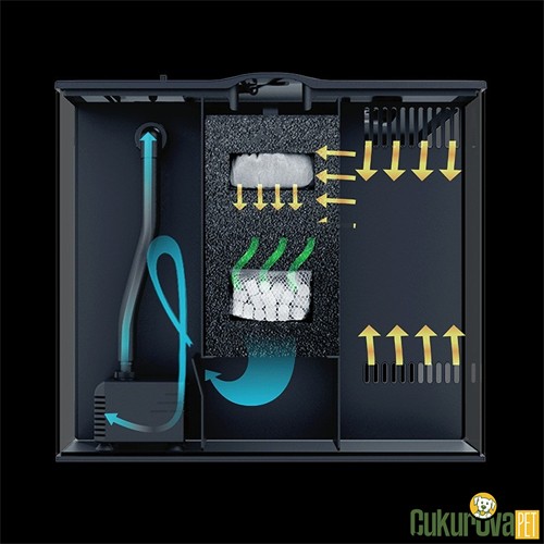Entegre filtreleme sistemi sayesinde düzenli ve temiz su ortamı sağlar