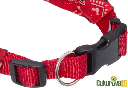 Kırmızı bandana deseni, Ayarlanabilir plastik toka, Günlük yürüyüşler ve gezintiler için uygun, Küçük ve orta boy köpekler için uygundur, Elle veya ılık suda yıkama önerilir.