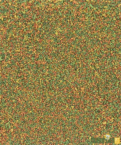 Kanarya tohumu yaklaşık %50, keten tohumu %5, tahıllar, sıvı ve katı yağlar, sebzeler, bitkisel türevler, mineraller, meyve (örneğin elma yaklaşık %5 kurutma öncesi eşdeğeri), şekerler, mannan-oligosakkaritler (MOS), tagetes, yucca.