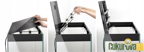 Glossy ST 100 Day & Night Akvaryum Seti, orta-büyük hacimli akvaryum projelerinde ihtiyaç duyulan estetik ve fonksiyonel bileşenleri birlikte sunar. Yüksek şeffaflığa sahip cam yüzeyler, su altı yaşamını net şekilde izleme olanağı sağlar. Day & Night LED aydınlatma sistemi, gündüz modunda doğal ışık ortamı sunarken gece modunda düşük ışık ile canlıların strese girmeden gözlemlenmesine uygun bir ortam sağlar. Turbo Filter 800 filtrasyon sistemi, mekanik ve biyolojik temizliği dengeli şekilde destekleyerek su kalitesinin korunmasına yardımcı olur.