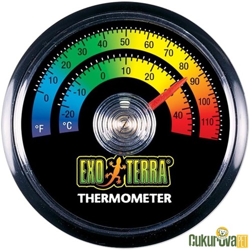 Exo Terra Yuvarlak Teraryum Termometresi, sürüngen ve amfibik terrarium ortamlarında iç sıcaklığı doğru ve hızlı bir şekilde takip etmenizi sağlayan analog bir sıcaklık ölçüm cihazıdır. Yuvarlak tasarımı ile terrarium camına kolayca monte edilebilir ve net okunabilen sıcaklık skalası ile ortam sıcaklığını anında gösterir. Sürüngenlerin ve diğer egzotik canlıların optimal yaşam alanı koşullarını korumak için ortam sıcaklığının izlenmesi kritik öneme sahiptir. Bu termometre, günlük bakımda sıcaklık kontrolünü kolaylaştırır ve yaşam alanını ideal aralıkta tutmaya yardımcı olur.