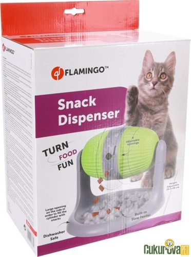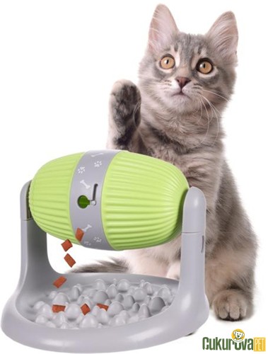 Flamingo Bent Dönebilen Tabaklı Ödül Maması Dispanseri, kedi ve köpeklerin hem zihinsel hem de fiziksel olarak aktif kalmasını desteklemek için tasarlanmış interaktif bir ödül oyuncağıdır. Dönebilen tabak sistemi sayesinde evcil hayvan ödüle ulaşmak için oyuncağı hareket ettirir, bu da problem çözme becerilerini geliştirirken oyun süresini uzatır. Mama veya ödül ile kullanılabilen yapısı, beslenme sürecini daha eğlenceli ve kontrollü hale getirir. Açık yeşil ve gri renk kombinasyonu ile ev ortamına uyum sağlar ve iç mekân kullanımı için uygundur.