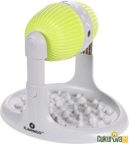 Flamingo Bent Dönebilen Tabaklı Ödül Maması Dispanseri Kedi & Köpek Oyuncağı Açık Yeşil & Gri 31 x 25 x 26 Cm