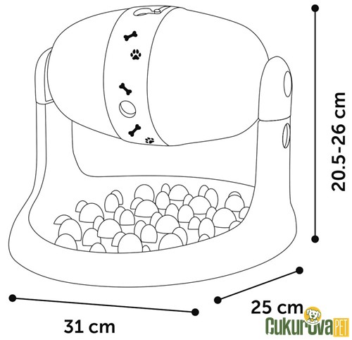 Genişlik 31 cm derinlik 25 cm yükseklik 26 cm ölçüleri ile kedi ve köpeklerin rahatça etkileşim kurabileceği ideal boyut sunar