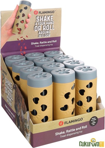 Flamingo Deru Silindir Ödül Maması Dispanseri, kedi ve köpeklerin zihinsel olarak aktif kalmasını desteklemek amacıyla tasarlanmış pratik ve eğlenceli bir ödül oyuncağıdır. Silindir formu sayesinde evcil hayvan oyuncağı yuvarladıkça içindeki ödül mamaları kontrollü şekilde dışarı çıkar ve bu durum problem çözme becerisini teşvik eder. Günlük beslenme rutinini daha yavaş ve eğlenceli hale getirerek hem oyun hem de ödül sürecini bir araya getirir. Bej renkli sade tasarımı ile ev ortamına uyum sağlar ve iç mekân kullanımına uygundur.