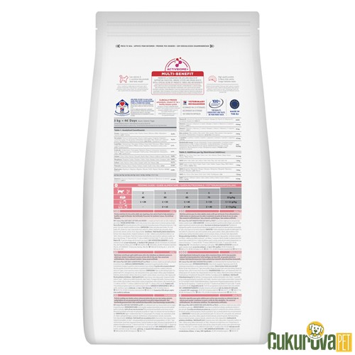 Tavuk ve hindi unu, mısır, buğday, selüloz, hayvansal yağ, bitkisel protein ekstraktı, hidrolize protein, mineraller, balık yağı, keten tohumu, vitaminler.