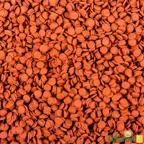 Balık ve balık ürünleri (ringa unu), yumuşakçalar ve kabuklular (kril unu %8, kalanus unu %1,7), böcekler (böcek larvaları unu %5), bitkisel protein ekstraktları, algler, bitkisel kökenli ürünler (sarımsak %4,5, kırmızı biber ekstresi 3800 mg/kg), meyve lifleri, tahıllar, mayalar (Beta-1,3/1,6-Glukan 1000 mg/kg), sıvı ve katı yağlar, mineraller.
