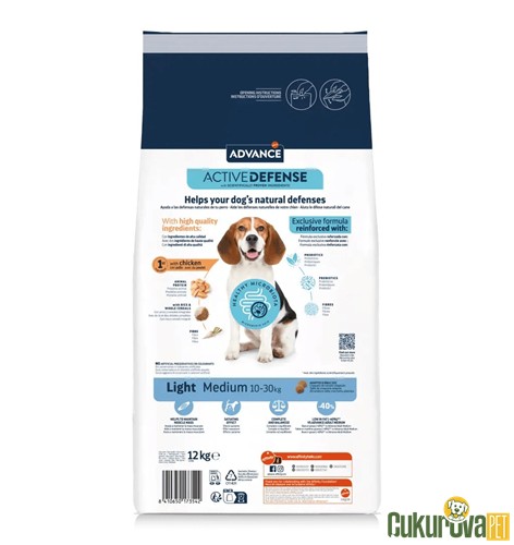 Advance Orta Irk Light Köpek Maması 12kg Tavuk Etli Düşük Kalorili Mama