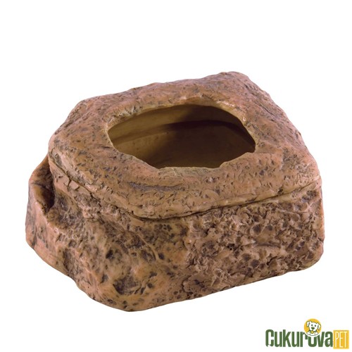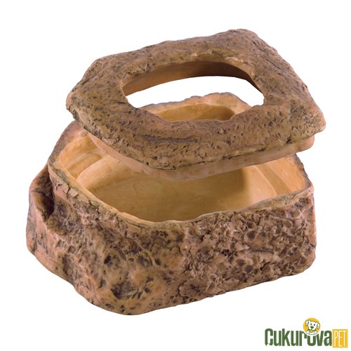 Boyut 10 × 8.5 × 4.5 cm Malzeme reçine kompozit doğal kaya efekti Kullanım amacı kurt unkurdu un böceği larvaları gibi kaçabilen yemleri güvenli şekilde sunmak İç hazne dik kenarlı kurt kaçmasını engelleyen yapı Yüzey yapısı iç yüzey pürüzsüz dış yüzey doğal taş görünümü Ağırlık stabil devrilmeye karşı dayanıklı Uyum gecko küçük kertenkele küçük yılan ve tarantula gibi canlılar Taban yapısı düz kaymaz teraryum zemininde sabit durur Temizlik kolaylığı gözeneksiz yüzey su ile kolay temizlenir Form doğal taş şekli dekoratif uyum Giriş yapısı sürüngenin kolay erişebileceği alçak kenar.