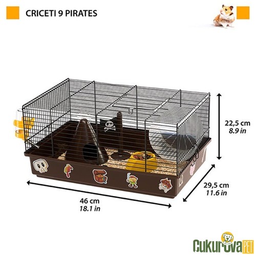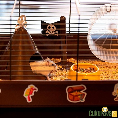 Ferplast Criceti 9 Pirates korsan temalı kemirgen kafesi, 46x29x23 cm ölçüleriyle hamsterlar için eğlenceli, dayanıklı ve kolay temizlenebilir bir yaşam alanıdır.
