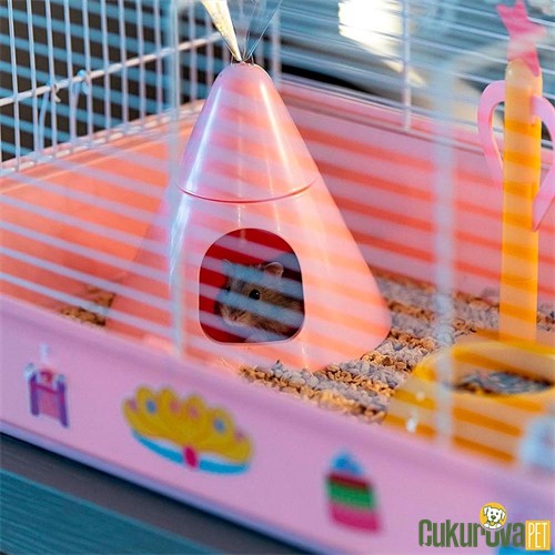 Ferplast Criceti 9 Princess prenses temalı kemirgen kafesi, 46x29.5x23 cm ölçüleriyle hamsterlar için eğlenceli, renkli ve konforlu bir yaşam alanı sunar.