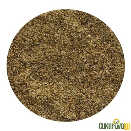 Balık unu, buğday unu, bira mayası, kalsiyum caseinat, böcek unu (Hermetia larvası %4), gammarus unu, spirulina, tam yumurta tozu, deniz yosunu unu, mannan oligosakkaritler, morina balığı karaciğer yağı, bitkiler (alfalfa, ısırgan otu, maydanoz), kırmızı biber, yeşil kabuklu midye unu, ıspanak, havuç, Haematococcus yosunu, sarımsak, rezene tohumu, anason tohumu